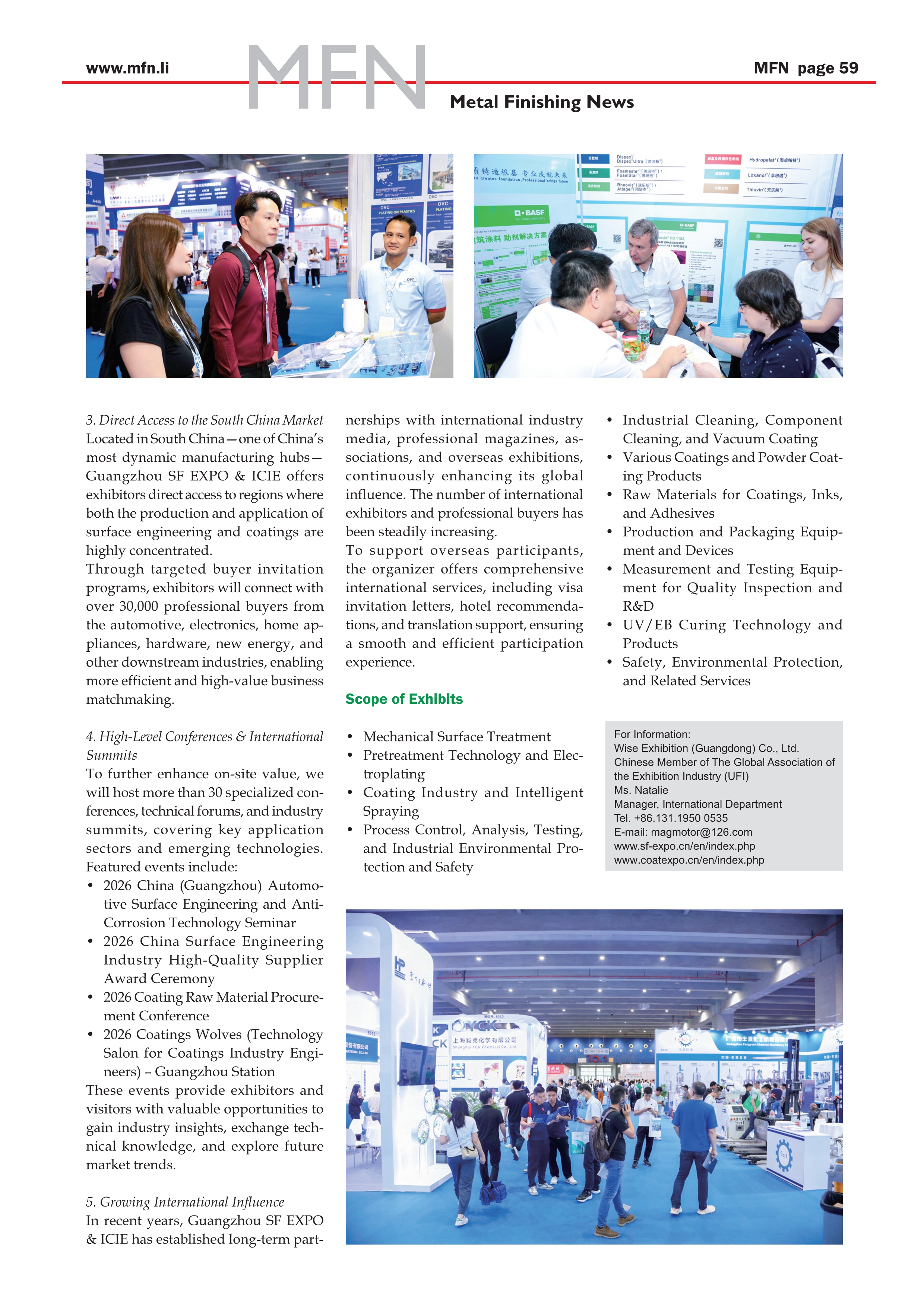 MFN国际版三月刊已上传第19届国际(广州)表面处理 电镀 涂装展览会和 2026 国际(广州)涂料工业展览会展会新闻: